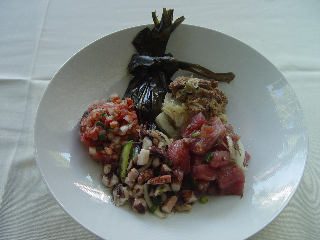 日本にあるまぐろの「ヅケ」に似ていますが、みりんなど甘い系の替わりに潔く塩と醤油で味付けているところが、くどいようですが実にご飯に合うのです。