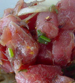 ロミロミサーモン、ラウラウ、タコポケ、アヒポケ、などなどですが、一番日本人の口に合う料理が「アヒポケ」。