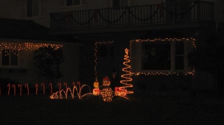 街の一番の変化は各家庭のデコレーション。かなりの割合で家の外をクリスマスのモチーフで飾る家庭が多いです。多いのはちょっとした電気で飾りをつけるというものですが、凝ったものになると、サンタやキャラクターで前庭埋め尽くして飾りつけする家庭もあります。