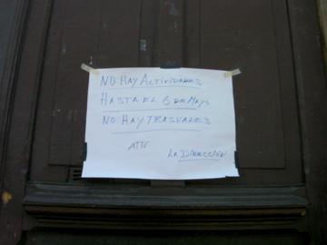 グアダラハラ市内の古い教会では、扉に「5月6日まで礼拝などは行いません」と張り紙がされています。(写真上) 普段は救いを求める全ての人々に門戸を開いている教会ですが、今回に限っては「集団の集まる場所=感染拡大を助長」となってしまうので仕方のないことです。