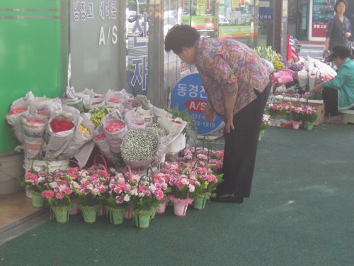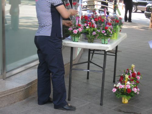 お花屋さんはもちろん、トラックの荷台で売りにきたり、銀行の前で小さな店を広げたり、歩道の端にしゃがんでお花を売ったりしています。