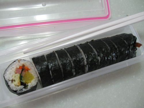 韓国では、子供にお弁当を持たす日には輪切りにしたキムパッを1本丸ごと持たせるお母さんも多いようです。