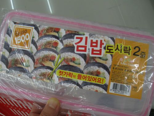 家で作る人も入れば、街中ではキンパッ屋さんもそこここにあるので、買ったものをこのケースに入れ替えて持たせる人もいるようです。