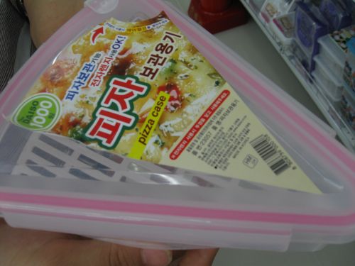 ピザケースです。三角にきったピザをお弁当にする時に使うようです。こちらは1500ウォンでした。