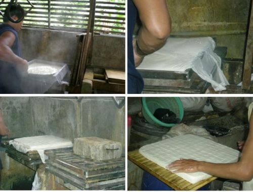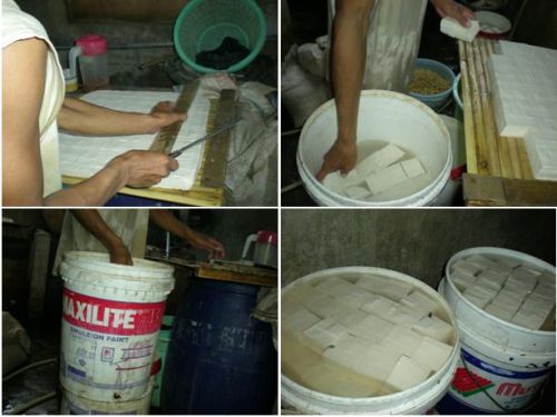 豆腐製造の過程を見たことのなかった私ですが、次の工程を見るとなんだか安心(↓)。