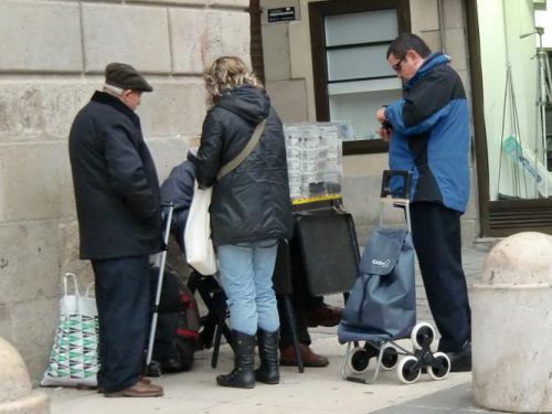 キャビンの中で売る人や、建物の1階の小さなスペースで売っていたりしますが、歩道に椅子と小さいテーブルを置いて売るスタイルが、スペインでは存在します。