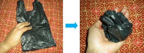 上の写真2枚をご覧ください。右側のようにビニール袋をくしゃくしゃにして