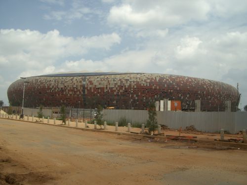 ヨハネスブルグのタウンシップ、SOWETOのすぐ近くにあります。元々あったスタジアムをRand 3.3 billion(=約400億円) をかけて改修し、現在アフリカでもっとも大きな94700人収容可能のスタジアムです。