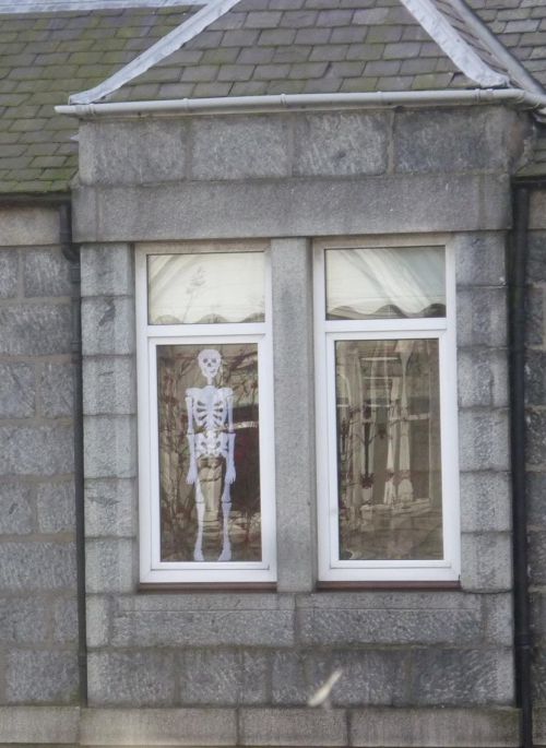 窓の外を見るとがいこつ君と目があって、ちょっと焦ります。
