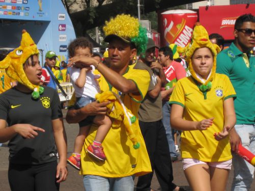 この日もサンパウロ市の特設応援会場に行った。サポーターの数は2万5千人ほど。2人の日本人学生がいた。21歳の小林諒介さん、堀内雅貴さん。「ブラジルの迫力に圧倒された」といい、「どこへ行っても私たち日本人に良くしてくれた」そうだ。