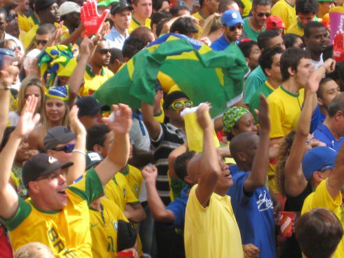 チリに勝って、歓声を上げるブラジルのサポーター(サンパウロ市の特設応援会場)