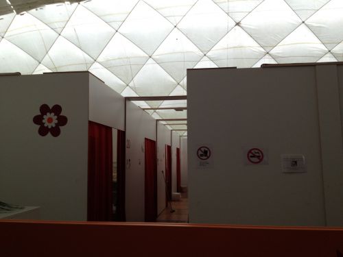 施設の入口には「難民仮宿泊所」の表示がされています。運営してるのは市内のNPO団体で、現在約300人が宿泊しているそうです。昨年より宿泊所として利用されているそうです。