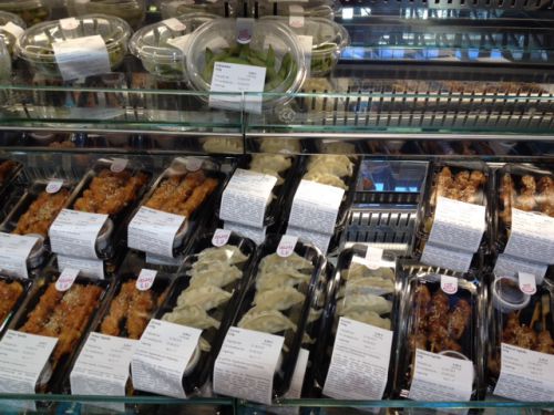 「Fresh Sushi Asian」なる売り場で売っていたものをみてびっくり。Asianとはありますが、お寿司に餃子、枝豆、焼き鳥、さらにはカップラーメンなど、むしろ日本のお惣菜ばかりでした。