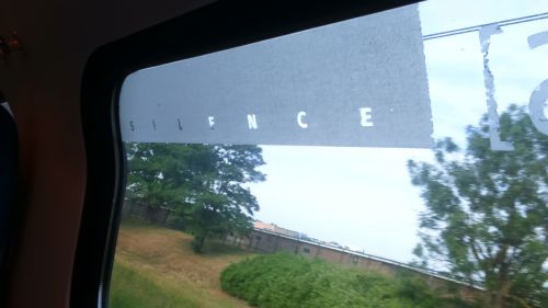 確かによく見ると、上の写真のように窓に「サイレンス」と書かれていました。