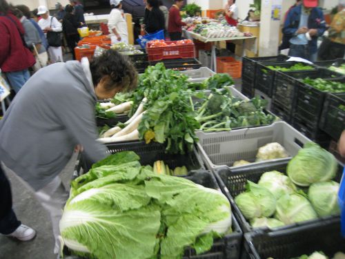 隔週土曜日に開かれる野菜市場の風景(サンパウロ市東洋街の宮城県人会会館駐車場)