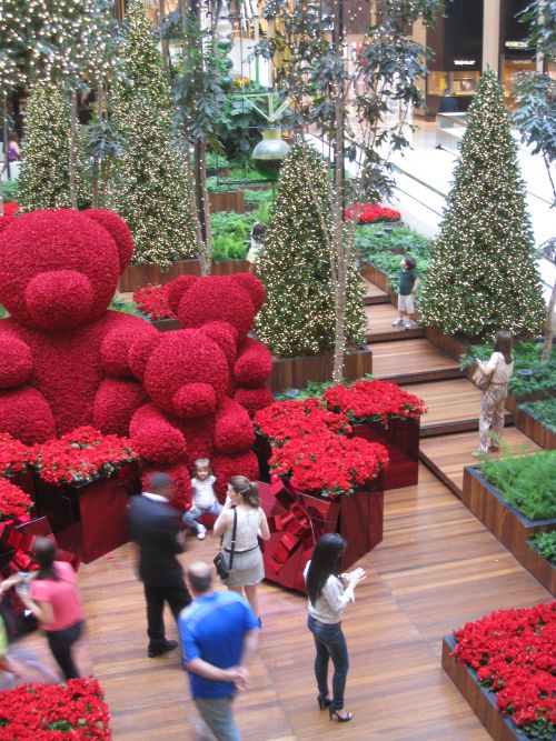 吹き抜けの広場に華やかなクリスマスツリー。しかし、景気は…(サンパウロ市のショッピングセンターで)