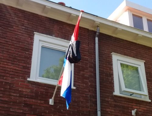 この動画の最後、合格通知に喜ぶ生徒の家では、オランダ国旗に何かをつけて掲揚しています。
