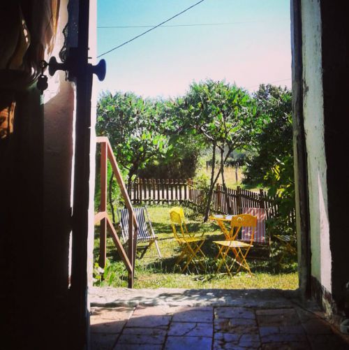 フランスの人はカラフルな色がすきな人が多いです。バカンス中にであう人にも多いのが、色鮮やかな水着やドレスをきています。知り合いの方と話すと、身にまとうものでハッピーになれるから、私は色鮮やかなものをあえてバカンス中にはきるの!といっていました。それが関係してか、お庭にあるテーブルや椅子も色あざやかなものがおおいです。こういう空間がいつもそばにあるのは素敵ですね。