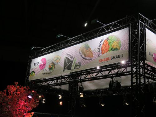 すし以外にもたい焼き、たこ焼きなどの屋台があるのをはじめ、和式包丁販売やカラオケ・コーナー、生バンド演奏などもあり絢爛(けんらん)豪華な日本の祭典といった趣でした!