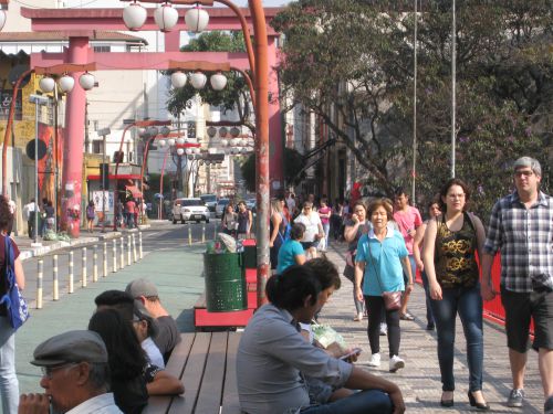 続いて、東洋街へも足を運んだ。同街のガルボン・ブエノ通りの中ほどには高速道路をまたぐ陸橋があり、風通しが良い。その上に休憩用の長い木製のベンチが設けられている。「ここは眺めが良く、気持ちがいいわ」と、日系3世のカーレン・中村さん(36)。