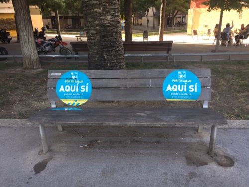 歩道にあったベンチも、このように離れて座るように奨励しています。