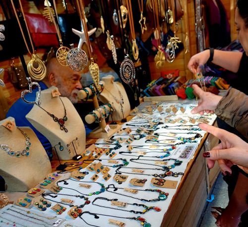 彼からインスピレーションを得たアクセサリーは地元ならではで、プレゼントやお土産用に抜群の人気で人だかり。近寄れなかったです。